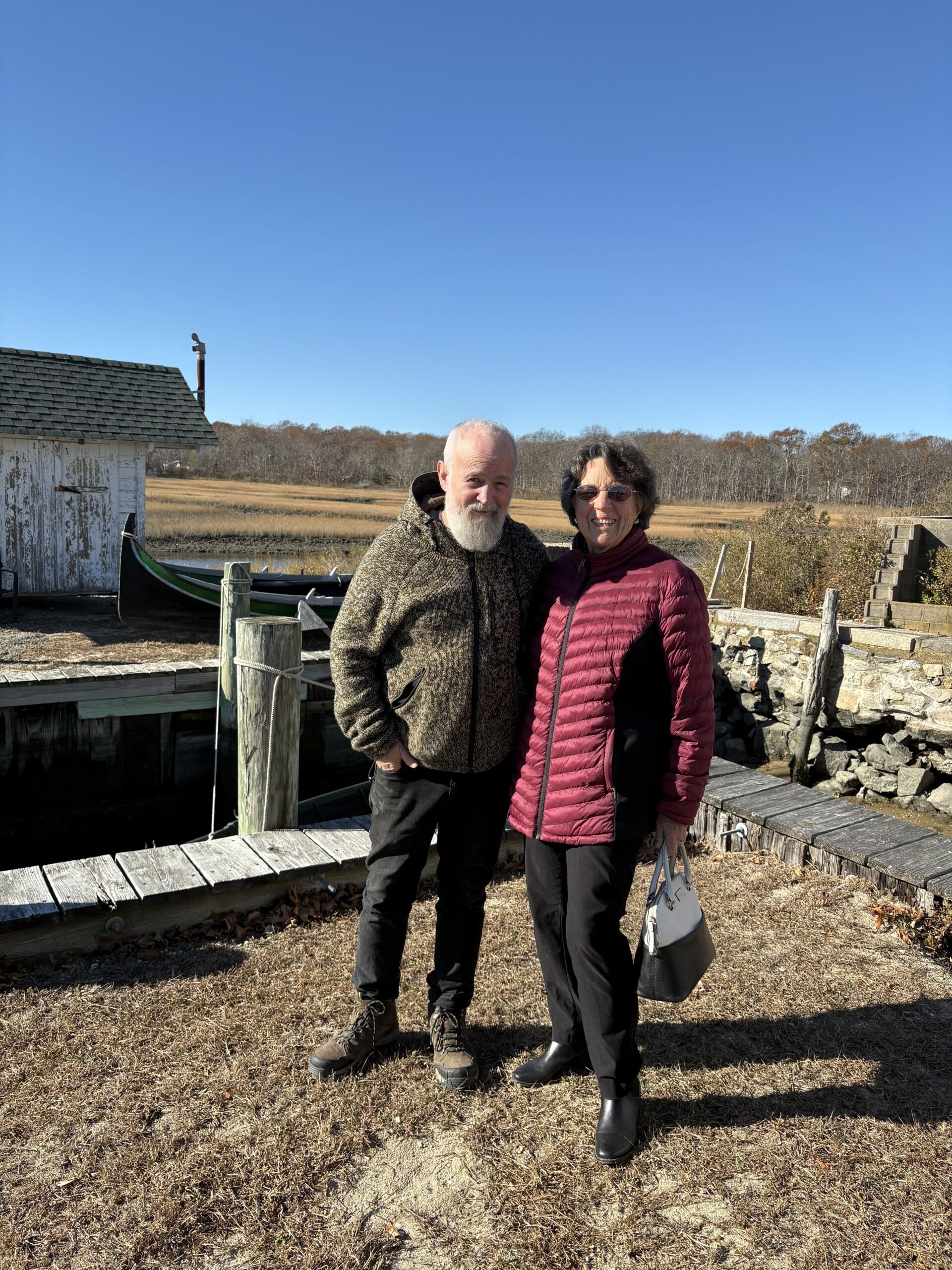 Leaving the historical society, the day took another unexpected turn. Just before climbing into the car, I asked whether we could make a quick stop to meet a gentleman named Pat Nelson—a shipwright whom Walt Ansel, head of the Henry B. DuPont Shipyard at Mystic Seaport Museum, insisted I should know. His home was conveniently on the way to our lunch destination, so Ruth agreed, and we turned down a quiet dead-end road leading to his driveway, which looped into a small roundabout.