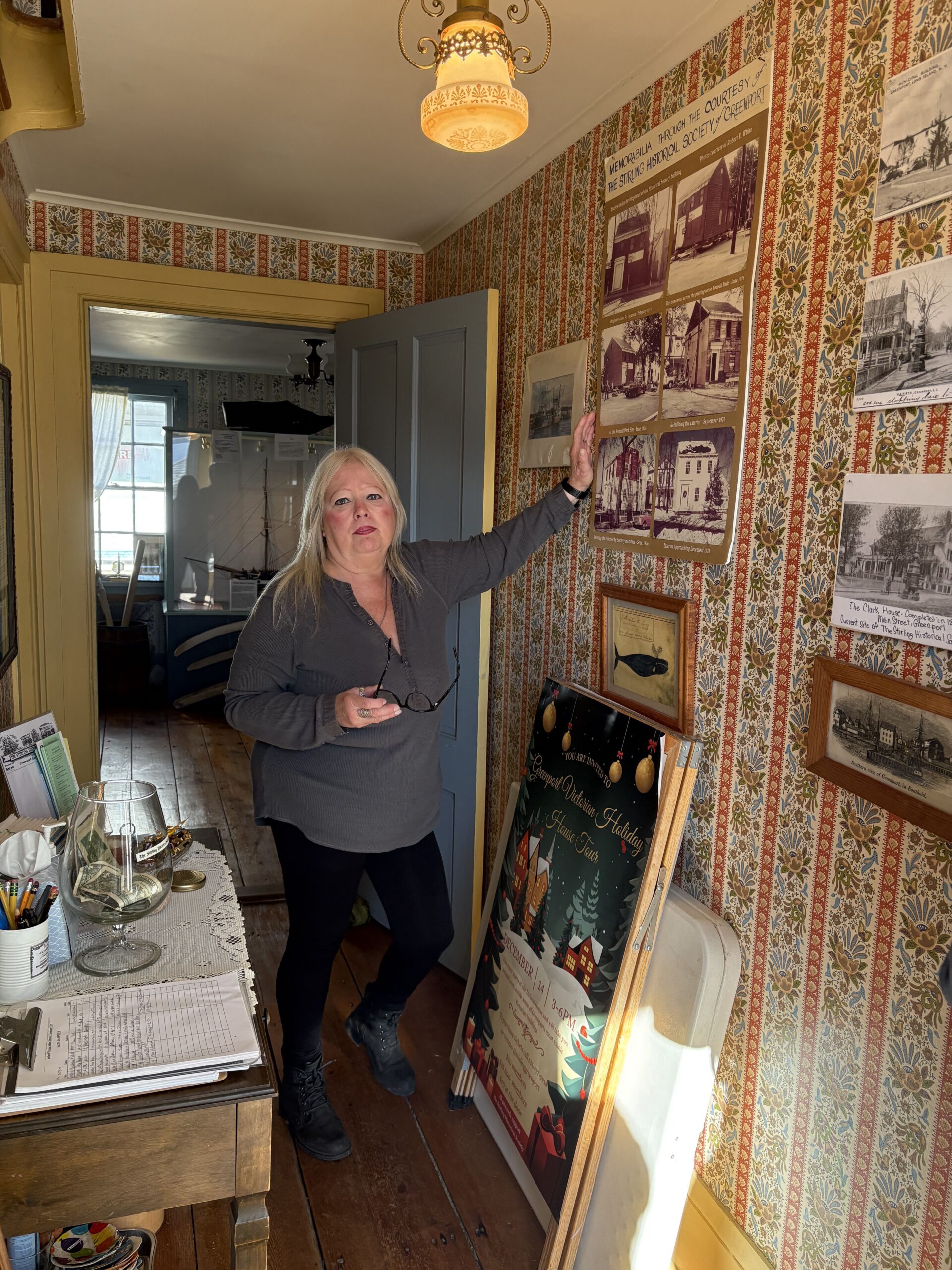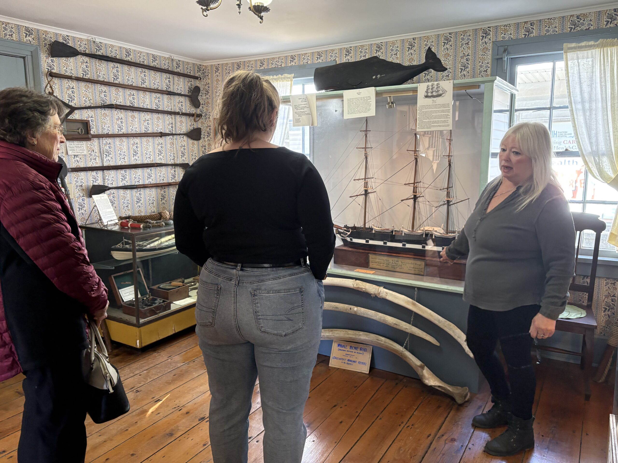 From the loft, our day shifted from living craftsmanship to the preservation of Greenport’s past. We headed to the Sterling Historical Society, where Ruth had arranged for us to meet Carole Monsell. Housed in a beautifully maintained 19th-century residence, the society documents the village’s deep maritime roots—from whaling and fishing to boatbuilding, lifesaving, and early local industry. Every room feels like a portal into another era.