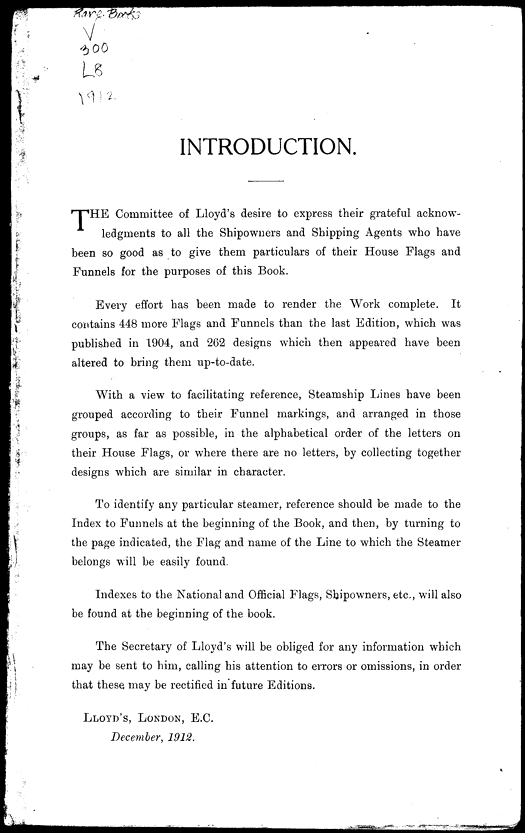 IntroductionLloyd’s Book of House Flags and Funnels 1912 – 100% + First ◀ of ► Last Wide Rotate Funding for digitization provided by The Andrew W. Mellon Foundation